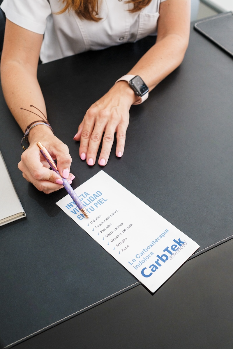 La carboxiterapia consiste en la aplicación de dióxido de carbono (CO₂) mediante micropunciones con una aguja muy fina. Este gas, presente de forma natural en nuestro organismo, estimula la segregación de neurotransmisores que relajan el tejido subcutáneo y dilatan los vasos sanguíneos.